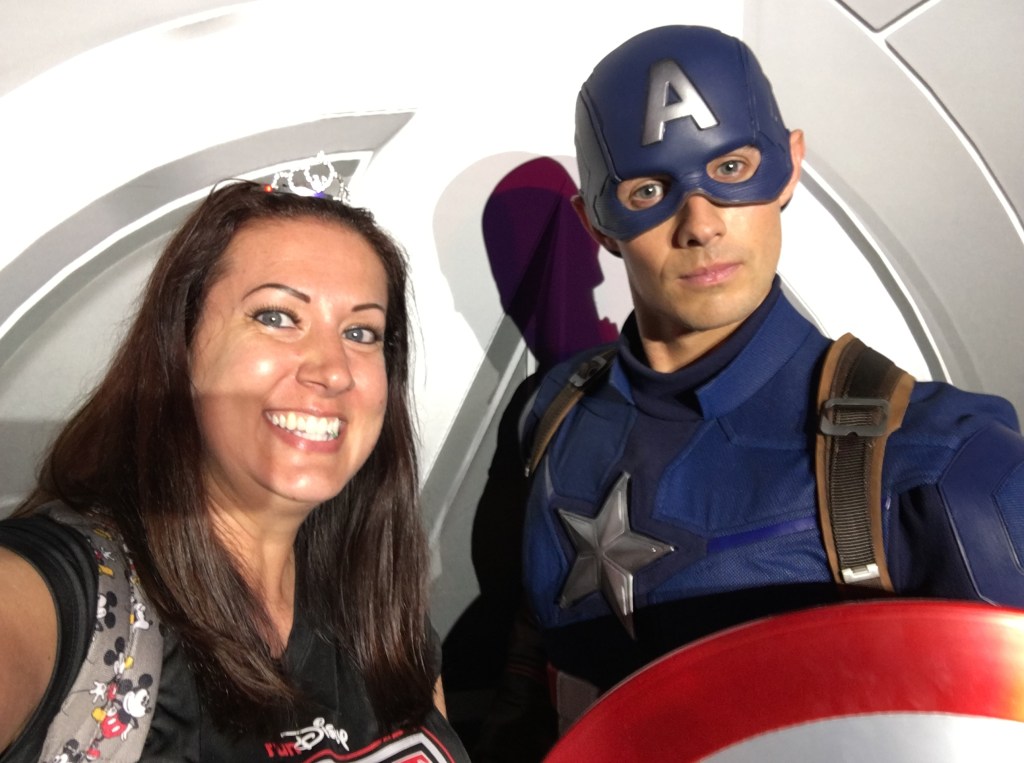 We decided to head to the room to rest and relax for a bit before the Inaugural Welcome party. After getting dinner at the party, I went to get in line to meet Captain America. Anyone who knows me knows I have a slight obsession with him.