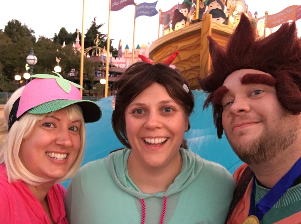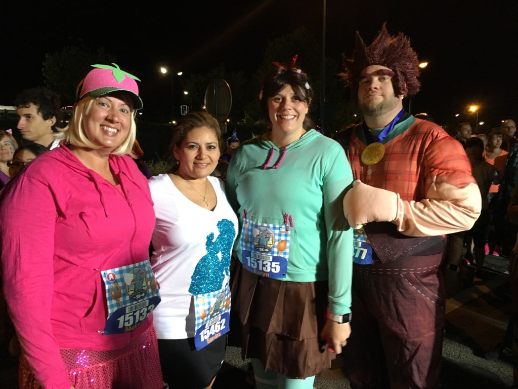 Most runDisney races in the States start at either 5a or 5:30a. I think one started at 6a…once. Well in Europe, most races don’t start before 10a. So the fact that the 5k started at 7a was early for them LOL. Ian was Ralph, Karyn was Vandellope, and I was Taffyta Muttonfudge all from Wreck-It Ralph. Sandra had a Belle theme for the weekend.