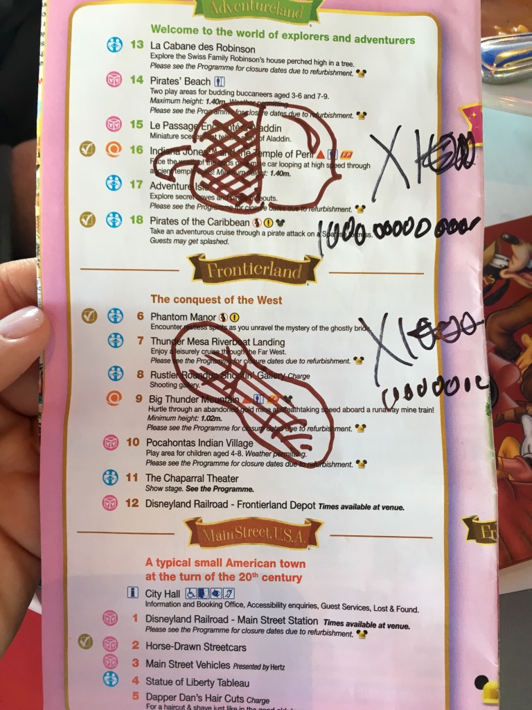 Up early the next morning for 2 words, MAGIC HOURS!!! It is when the park opens early for particular ticket holders. The lines are very short! Literally, the longest we waited was 10 minutes for Dumbo. Some rides weren’t open yet like Small World and Pirates, but we just went back to those when they opened at normal park hours. Their Space Mountain is so cool!! Way better than either in America. It has 360s and corkscrews. We want on it back to back with no wait.