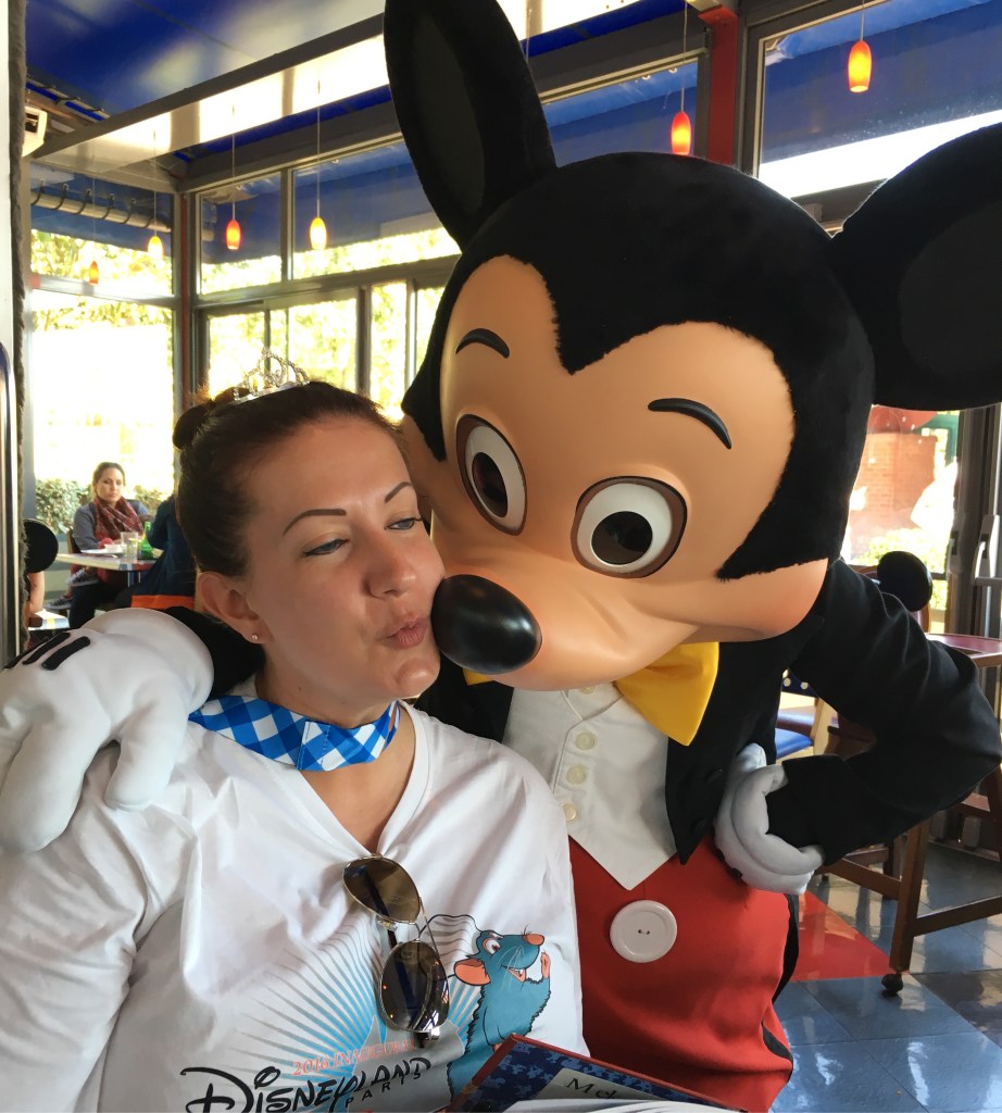 Back at the hotel for a quick shower and to get ready, so we could head back to the parks. We got on Small World and Storybook Canal before lunch at Cafe Mickey. We got to meet a lot of characters at lunch. They spent a lot of time with us too. Each character was fun and silly, also they loved giving kisses. Must be their French side.