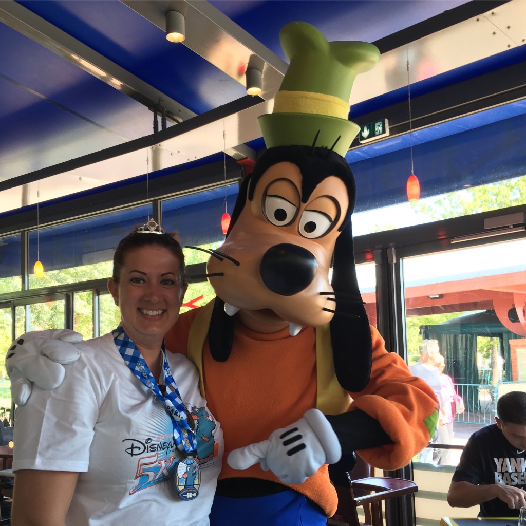 After meeting Cap, I went on Rockin’ Roller Coaster. Their’s starts out right into a 360 followed by a corkscrew!! Then I met up with the rest of the crew for more rides. Slinky Dog zip-zag was fun and cute. We then left the party to get some sleep before the 5k the next morning.