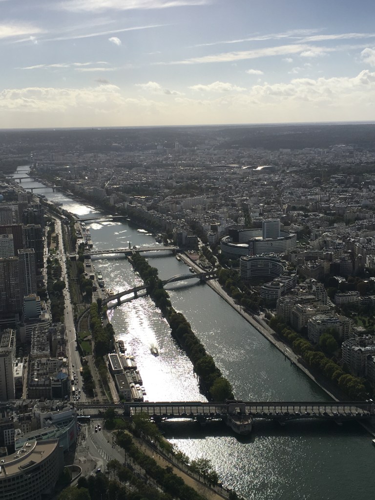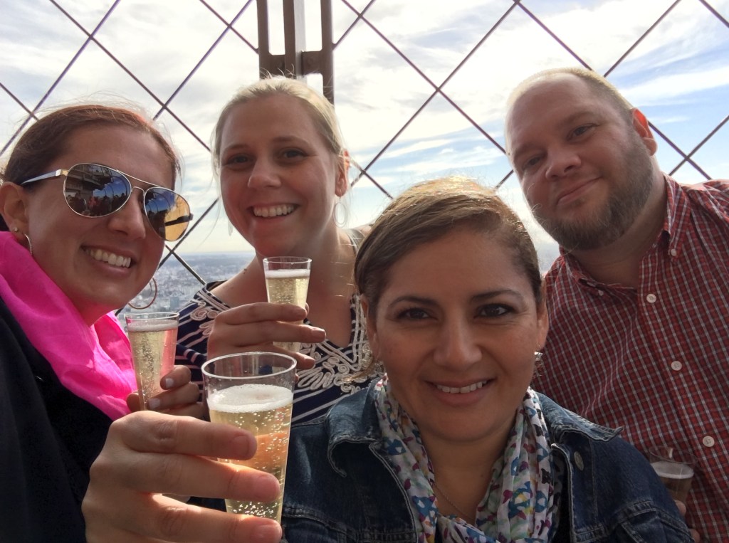 Once back at the hotel, we had to take quick cold showers. Thankful Karyn’s dad’s room was next door so we could utilize both showers. Once ready, we left for Paris proper. 1st up was the Eiffel Tower which we went all the way to the summit. While it was windy, it was quite beautiful! I love seeing the city from up there. We had to have celebratory champagne too!