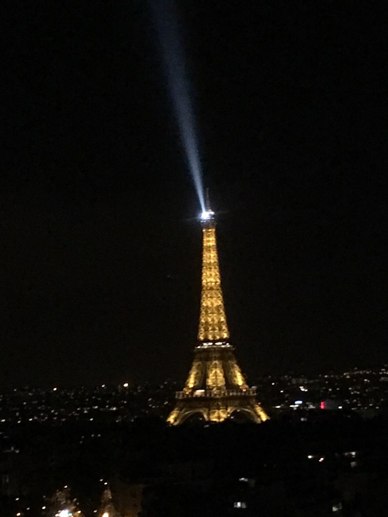 Once back on land, we took the Metro to the Arc de Triomphe. The view of the Eiffel Tower from the top of the Arc is the best. Every night on the hour, it lights up. Glistening and gleaming for about 10 minutes. It is magnificent!