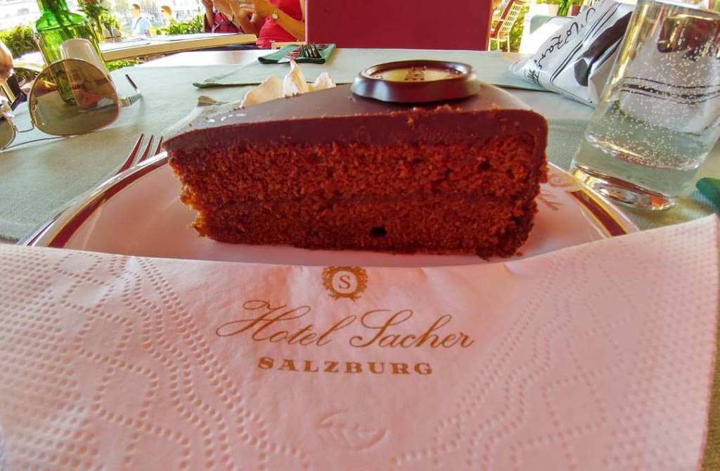 One thing I try to do when traveling is google the best, authentic food to eat in whatever city I am in and where to eat it at. So in Austria, I was looking for the best Austrian food in Salzburg. I was able to check a few things off that list. First up was the The Sachertorte at the Hotel Sacher. The Sachertorte was created in 1832 when the Austrian State Chancellor, Prince Klemens Wenzel von Metternich, tasked his kitchen staff with concocting an extraordinary dessert to impress his special guests.