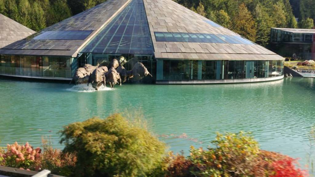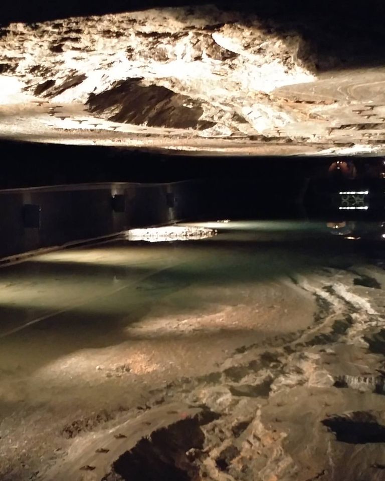 At the salt mines, they gave us these jumpsuits to wear over our clothes, so our clothes don’t get ruined. We boarded this little train that we had to sit on like a horse. At the next stop, in a large cavern, we learned about how the salt was made. We then road a wooden slide down about 3 stories. The slides were built by monks as an easy way to move about the caverns. We then rode another slide that was not as long. We ended up at a crystal lake. Its 100% clear water. It is only 1.2 meters deep, 40 meters wide, and 100 meters long. It reflects the beautiful colors on the ceiling. At that point, we were 130 meters below the ground. We rode across the crystal lake in a wooden boat. From there, we took an elevator back up to the train to return to the start.
