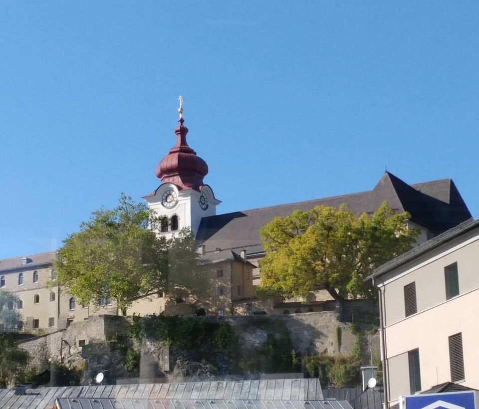 We then left the city to drive to Mondsee to the real church for the wedding scene. Along the way, we passed the Red Bull Headquarters. I didn’t know Red Bull was created in Austria in 1987.