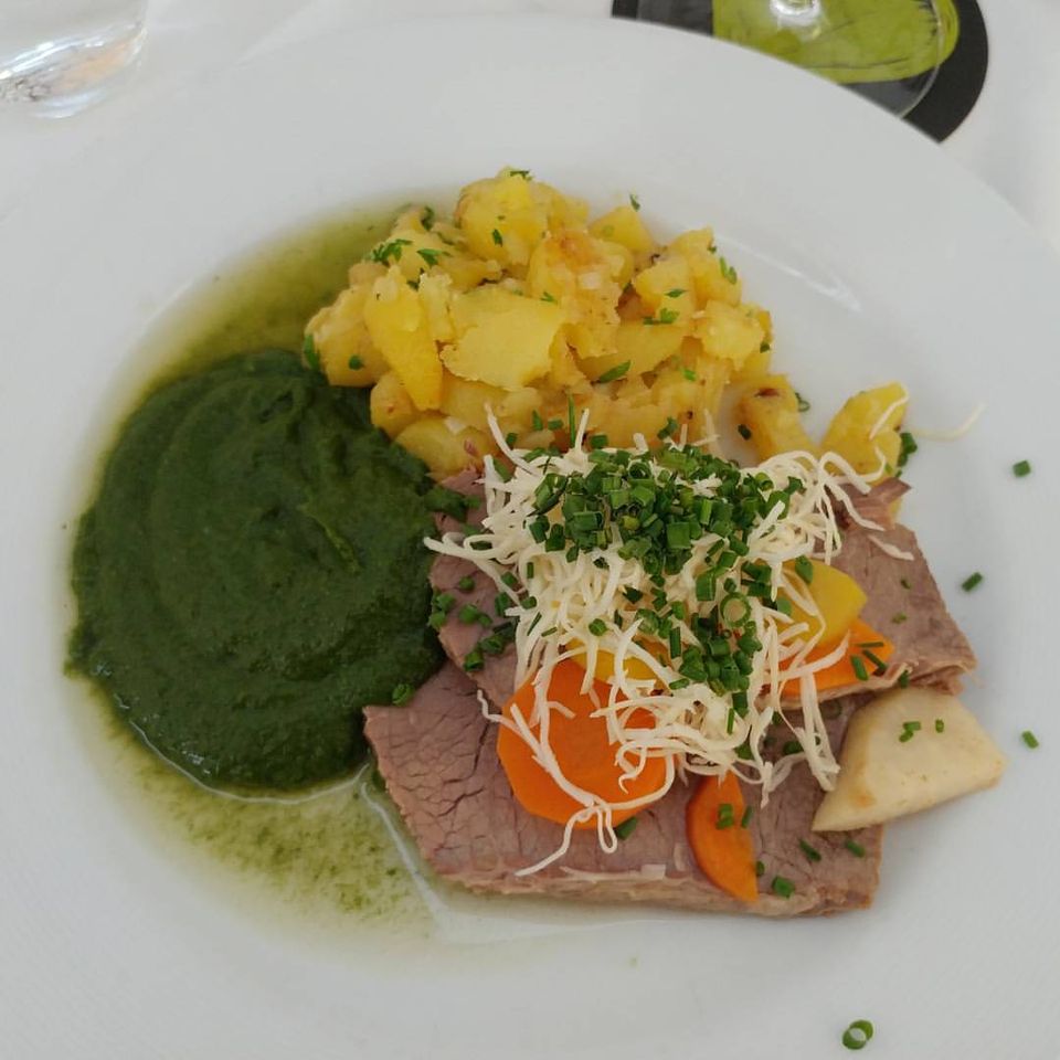 Another thing on my “must try” list was Tafelspitz at Zum Fidelen Affen. It did not disappoint!! Tafelspitz is boiled veal or beef in broth, served with a mix of minced apples and horseradish. Mine came with creamed spinach and potatoes.