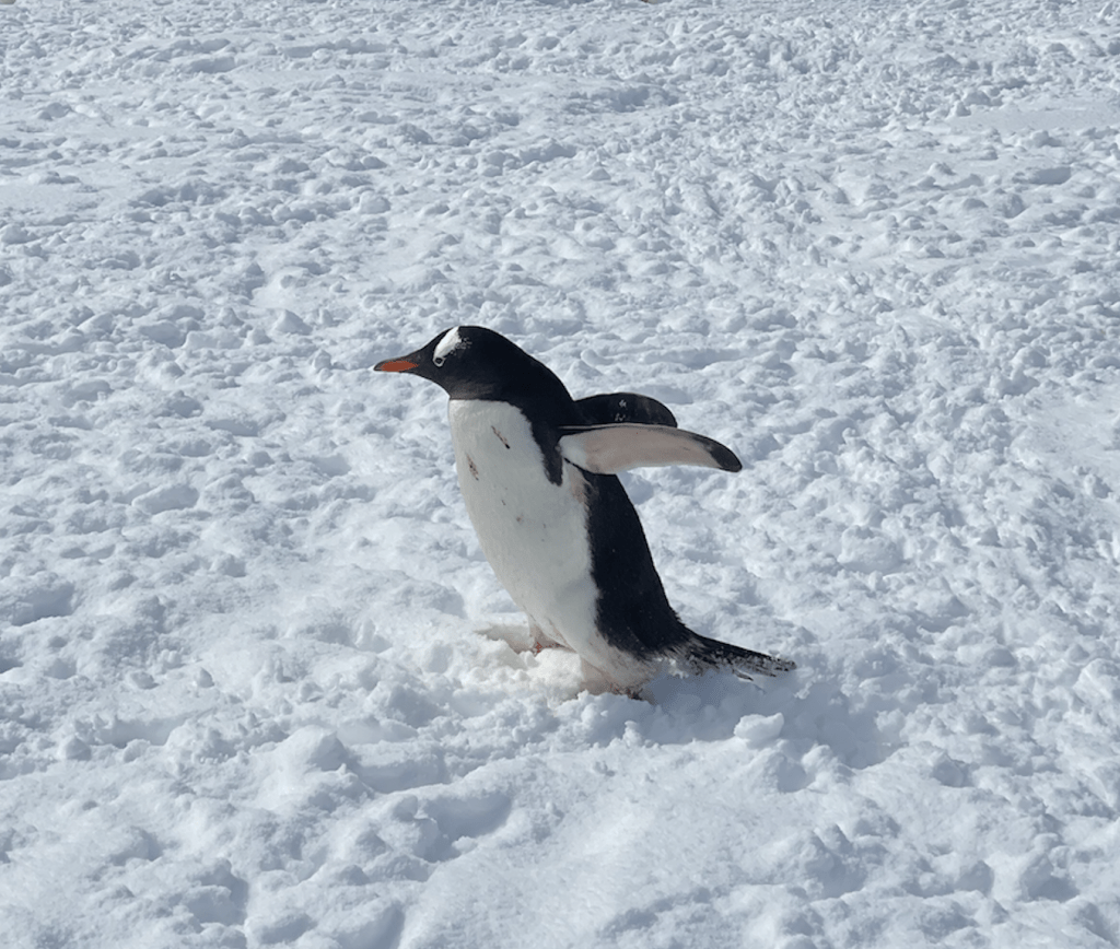 My other favorite landing was Cuverville. There were massive amounts of penguins!!! They would approach us, check us out, and then be on their merry way. Some would get very close and walk in our designated area. This would create “traffic” as we were not supposed to move if a penguin approached us. I was able to see penguins sleeping, penguins courting and doing their ritual for this, penguins chasing birds that eat their eggs, penguins chasing each other (this was absolutely hilarious), and even penguins mating. It was a very educational day. The weather at this landing was awesome. It snowed a lot and was cloudy. Then the sun would peak out and glisten on all the glaciers and just add a level of beauty to the scenery.